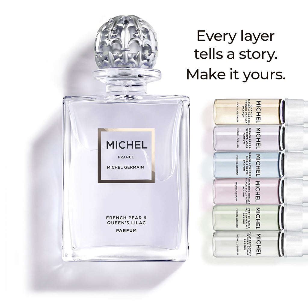 In a world where romance and messages of love lived in dreamy wafts of breathtakingly beautiful scents from Royal Chateau gardens, every Michel Collection scent beautifully layers with each other, in any combination.