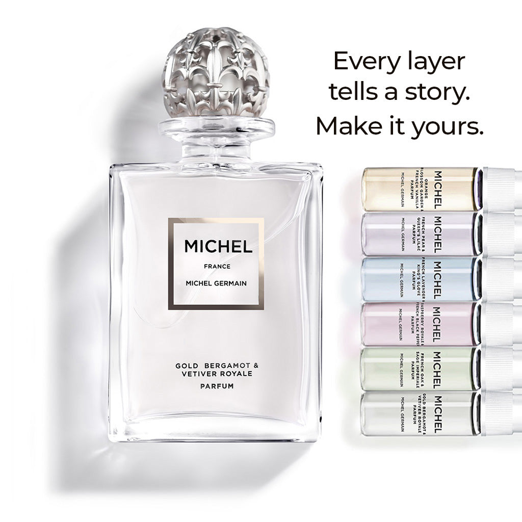 In a world where romance and messages of love lived in dreamy wafts of breathtakingly beautiful scents from Royal Chateau gardens, every Michel Collection scent beautifully layers with each other, in any combination.